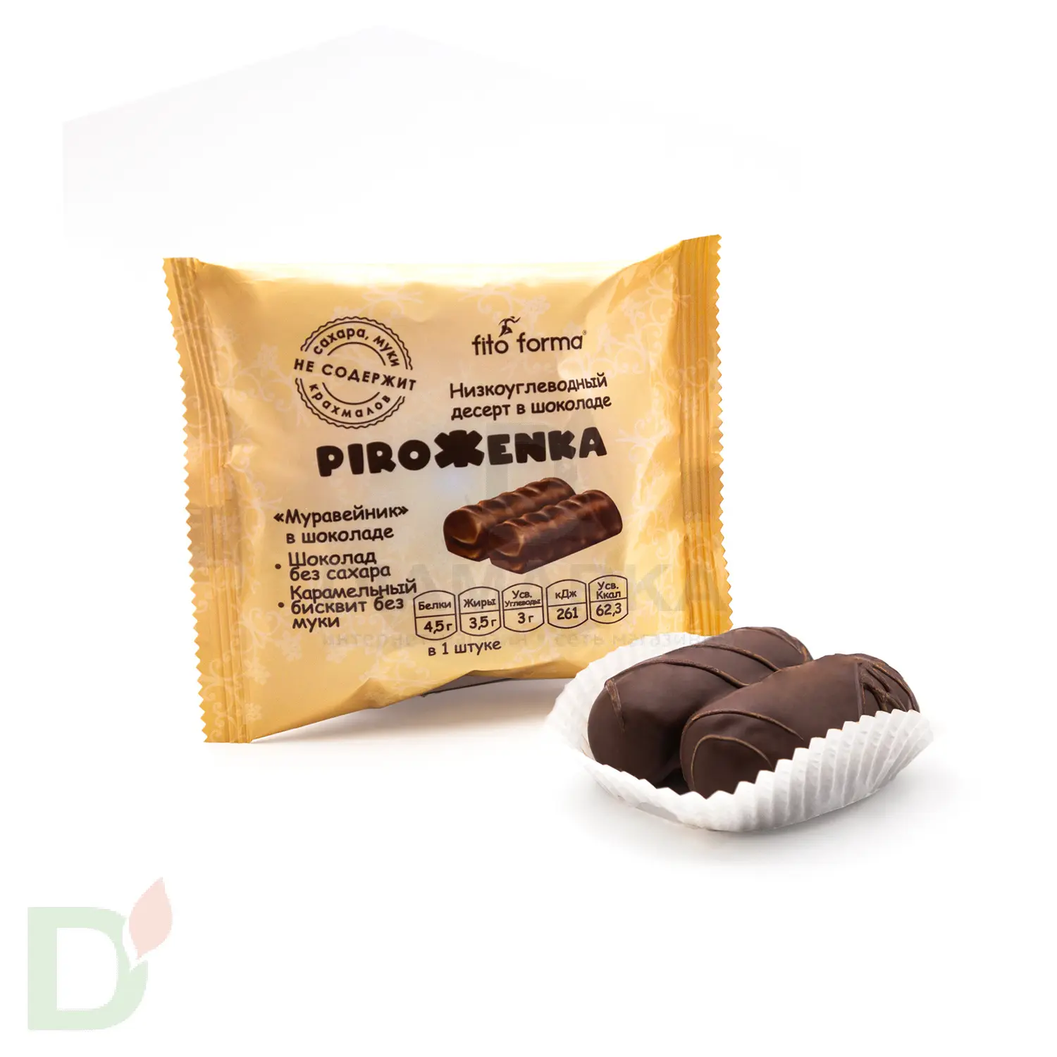 <h2>Уникальное пирожное, которое не вредит фигуре</h2> Все мы знаем, что если регулярно кушать вкусности-десерты, то со стройной талией можно попрощаться. Ведь обычные пирожные и печеньки - удовольствие весьма калорийное. И к тому же высокоуглеводное, что особенно важно для людей с диабетом!<br> <br> Эксесс Фри позаботились о том, чтобы вы могли баловать себя сладеньким без вреда для фигуры и... создали пирожное "Пироженка". В его основе мягкий бисквит и нежнейшая начинка, и все это великолепие покрыто тающим шоколадом! Удержаться невозможно...<br> <h2>Пирожное без сахара и муки </h2> Производителям удалось существенно снизить содержание калорий и углеводов в десерте. Все потому, что вместо сахара в составе бескалорийные современные подсластители: эритрит, мальтит, стевиозид. А вместо муки - пищевые волокна: инулин и растительная клетчатка. Так что Пироженка - это не только безопасное лакомство, но в какой-то мере и полезное!<br> <h2>Состав низкоуглеводного пирожного Муравейник</h2> натуральные подсластители: эритрит, мальтит, стевиозид; изомальтолигосахарид (пребиотик), яичный меланж, растительные пищевые волокна, какао тертое, какао масло, сыворотка молочная сухая, арахисовый белок, пребиотик инулин, натуральный ароматизатор, разрыхлитель, консервант сорбат калия, эмульгатор соевый лецитин.<br> <h2>КБЖУ на 100 грамм</h2> б - 11,3<br> ж - 8,9<br> у - 7,6 (усваиваемые)<br> клетчатка - 25<br> ккал усваиваемые - 155,7<br> <br> Масса нетто: 80 грамм<br> Срок годности 6 месяцев
