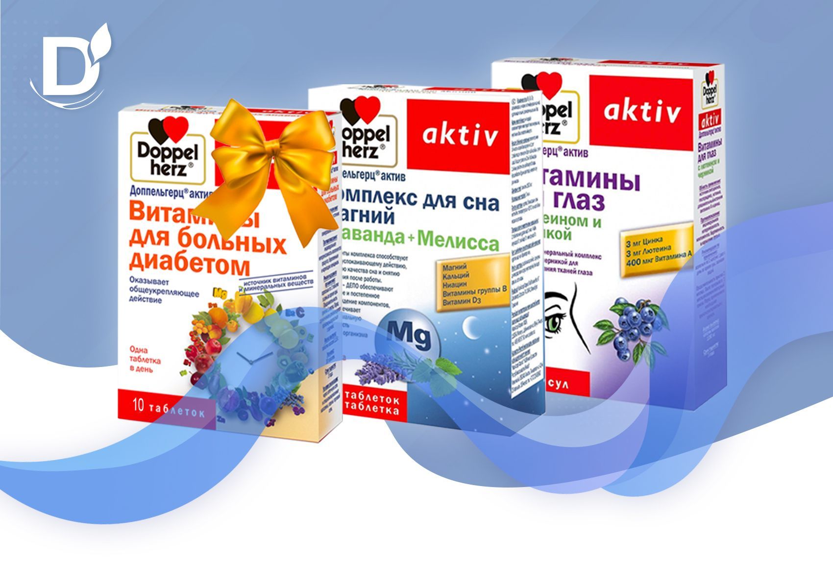 витамины Доппельгерц® Актив для людей с диабетом №10 ИЛИ фирменную таблетницу Доппельгерц®.