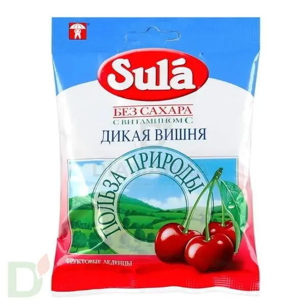 Леденцы Зула без сахара с витамином С "Дикая вишня", 60г.