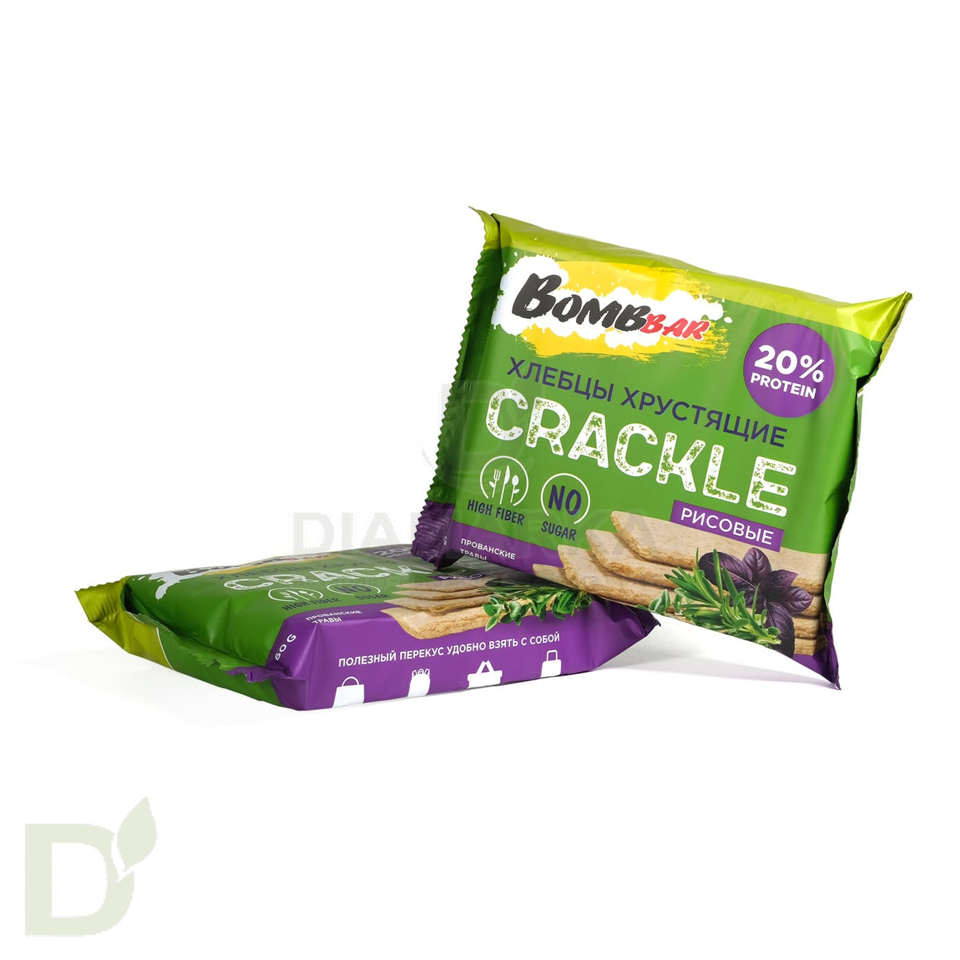 <h2>Хлебцы, как компонент правильного питания</h2> Хрустящие хлебцы - это отличная основа для правильно утреннего бутера или перекуса. Они прекрасно сочетаются с творожным сыром, авокадо, слабосоленой рыбкой, мясом или паштетом. Вкусно, хрустяще, сытно и полезно!<br> <br> <br> <h3>Не только вкусно, но и полезно</h3> Хлебцы Бомббар на 20% состоят из растительного - горохового - протеина. Они не содержат сахара и каких бы то ни было вредных добавок. Ах да, чуть не забыли: эти хлебцы имеют повышенное содержание углеводов! Один хлебец содержит примерно в 2-3 раза меньше углеводов, чем эквивалентный по размеру кусочек хлеба.<br> <h3>Состав хлебцев</h3> мука рисовая, мука овсяная, изолят горохового белка 85%, прованские травы, соль.<br> <h3>КБЖУ на 100 грамм хлебцев</h3> б - 21,4<br> ж - 3,3<br> у - 58,3<br> 351,6 ккал<br> <br> Масса нетто 60 грамм